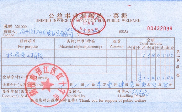 涓流不吝,以成江河。截止目前,公司黨支部一共向邗江區(qū)委組織部賬戶匯入黨員抗疫特殊黨費6700元。公司員工及合作單位也籌集了13400元的抗疫愛心捐款,匯款至邗江區(qū)紅十字會。